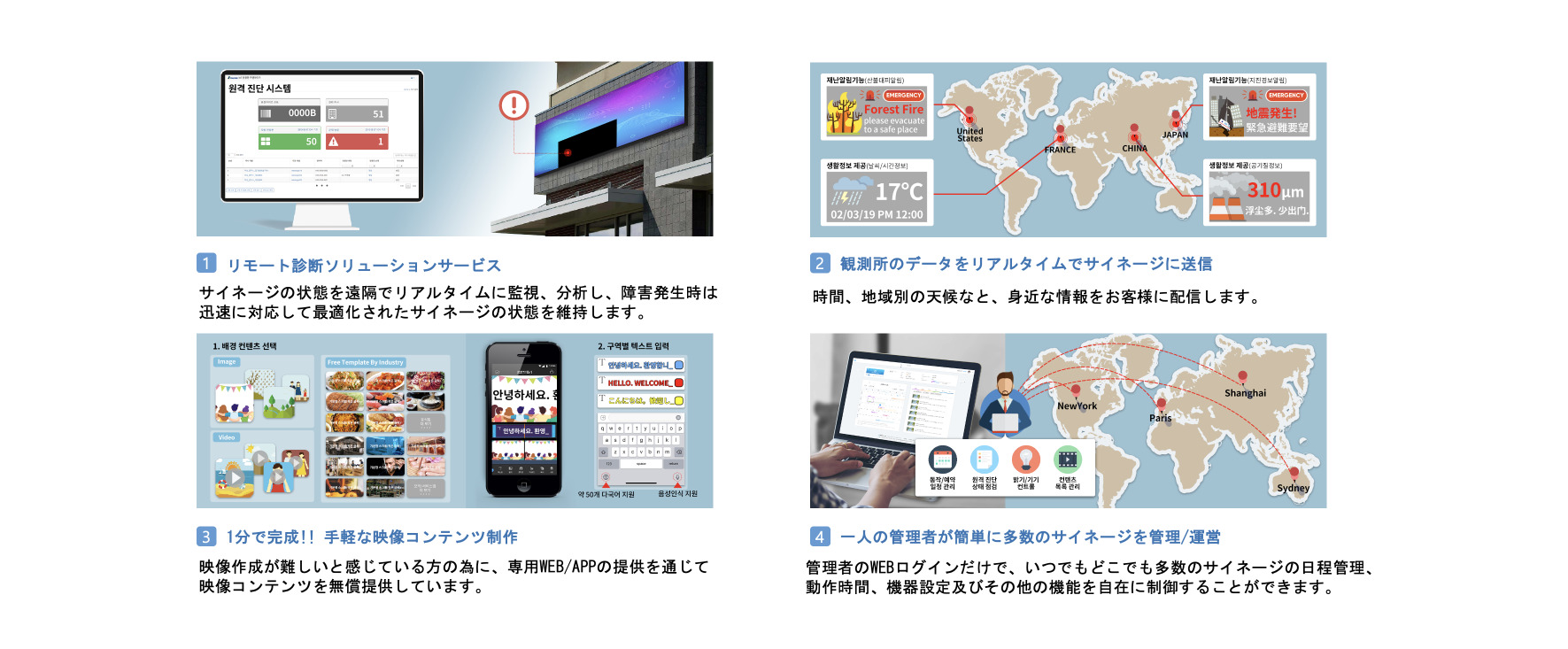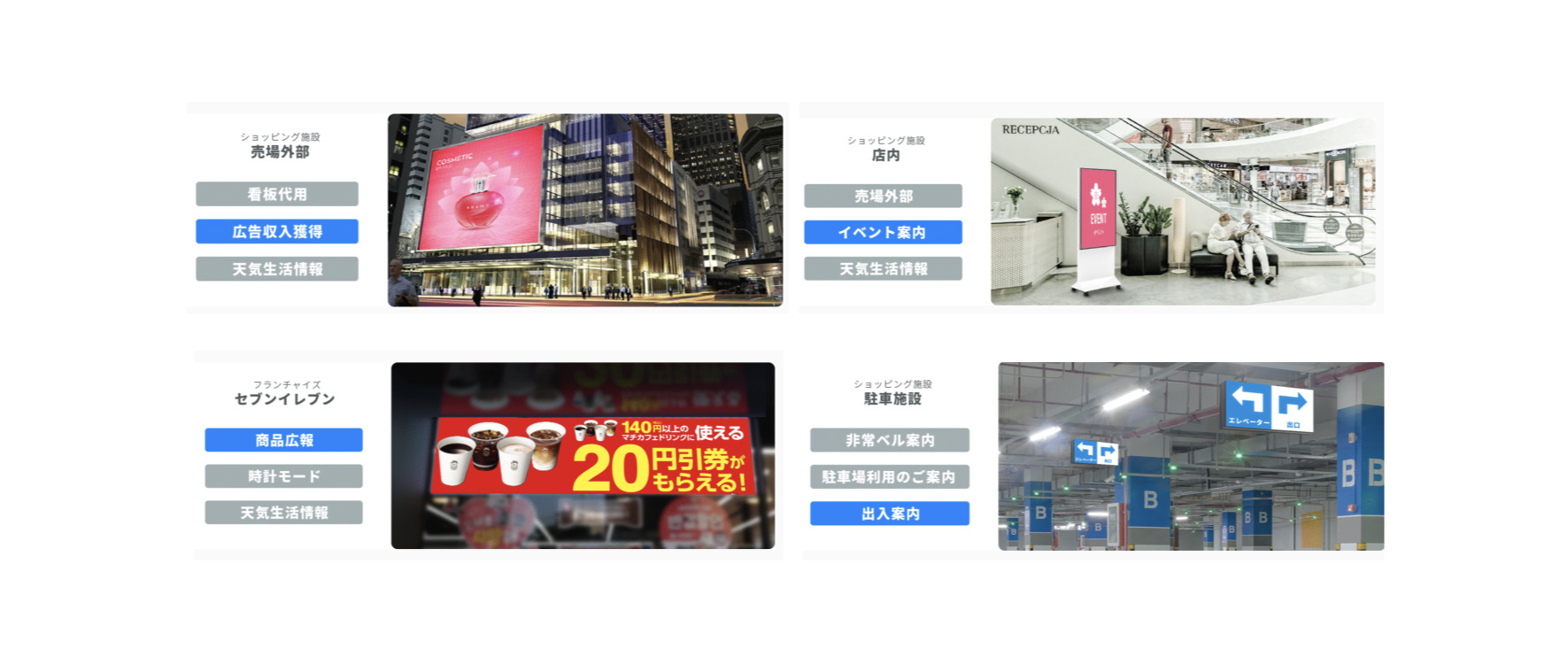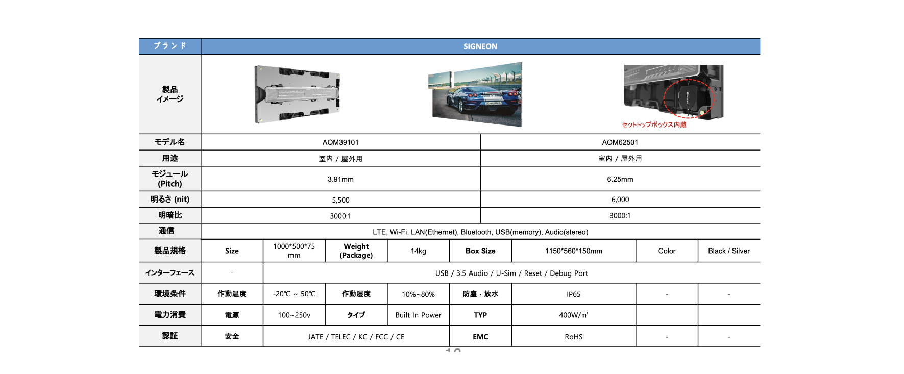 LTE、WiFi、LAN、HDMI、USBから選択でき、どんな場所でも設置可能。